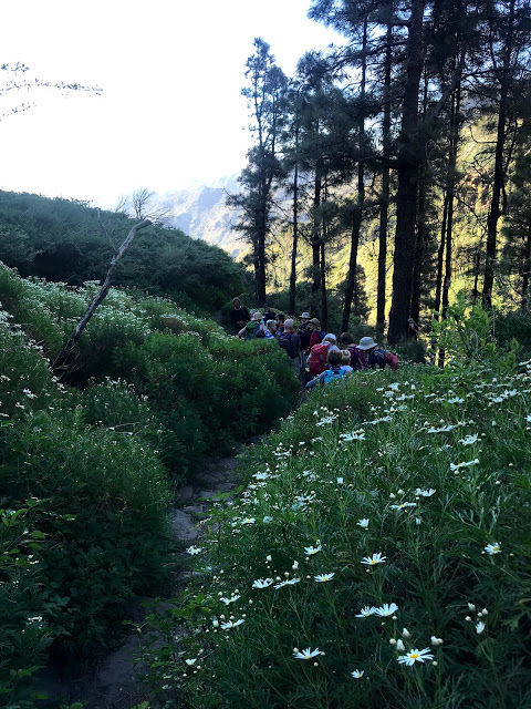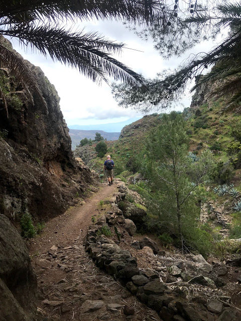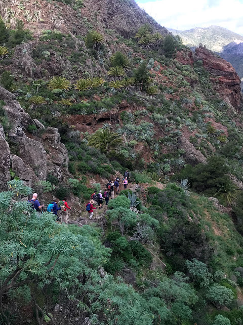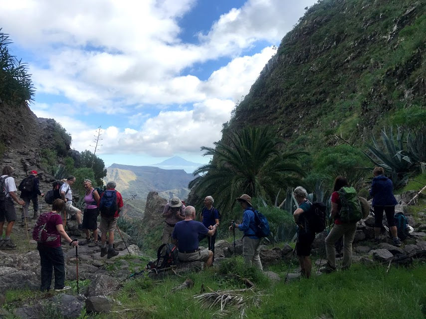 On arrival we find that many of our guests are apprehensive about the level and pace of the walking and wondering if they will be able for it? With this in mind we always start with a relatively easy descent from Las Toscas to the beautiful deserted farming village of Benchijigua via a gravel roadway with fairly level and good footing. From Benchijigua we pick up one of the oldest mountain paths on the Island which further descends to the picturesque villages of Pastrana, El Rumbaza and Taco. The path is rough and uneven underfoot in places, typical of many of the Island trails and takes about 3.5 hours giving people a chance to find their feet and gain confidence for the rest of their week's holiday. The mountain views are stunning.